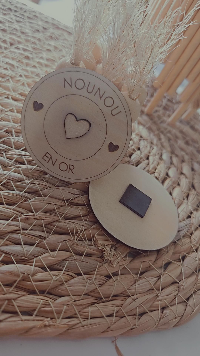 Valorisez l’engagement et la bienveillance d’une nounou avec ce magnet haut de gamme en bois naturel, finement gravé au laser. Son design épuré met en valeur un cœur central pailleté doré, symbole de gratitude et d’affection, offrant une finition élégante